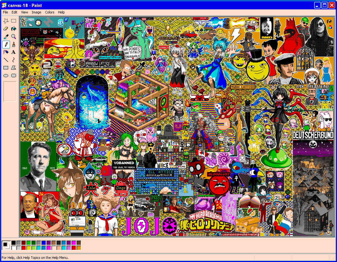 >>92484 Не рисую Нитори так как не считаю действия администрации пикселей правомерными, а место - законно освободившимся. Участвовать дальше планирую, окукливаться на холсте "для своих" смысла не вижу.