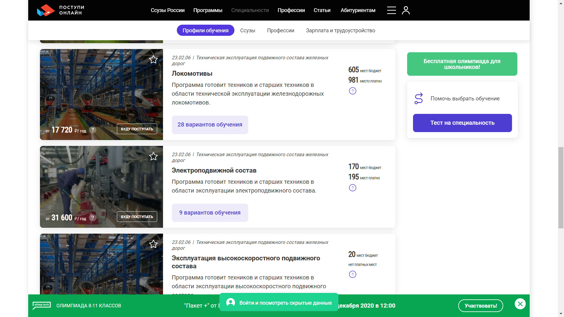 >>99871 Так там не один ссуз. Этот сайт - это типа агрегатора, который показывает все учебные заведения России, у которых есть возможность обучения по какой-то выбранной программе. Я в курсе про 5-6месячные курсы от депо, но там учат только на электровозы (а я хочу чтоб и электровозы, и тепловозы, я слышал что так можно), и потом как-то многие в жд-тредах в /b/ наоборот говорили что лучше туда не идти. Учиться я собираюсь заочно на коммерческой основе (т.к. у меня уже есть среднее, электроэнергетика). Вообще-то, как электрик я весьма успешен, но я никак не успокоюсь, пока хотя бы не попробую поработать машинистом. Так что и по этой причине мне курсы не очень подходят, т.к. там надо несколько лет по контракту отрабатывать, а вдруг мне не зайдет.