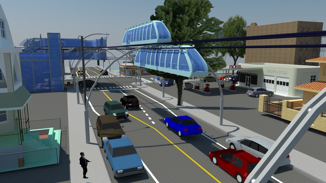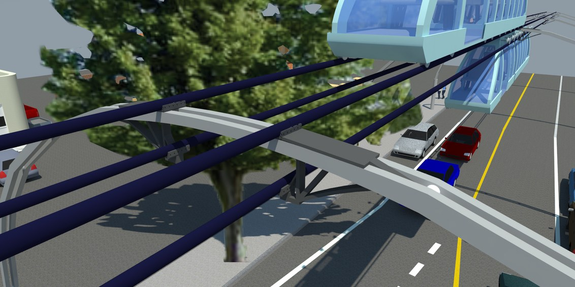 2. Не существует расчета экономической целесообразности этой затеи. А именно: стоимость возводимых опор и требований к ним, стоимость этого охуенного рельса, стоимость обслуживания транспортной сети. Электрификация т.д. и т.п.