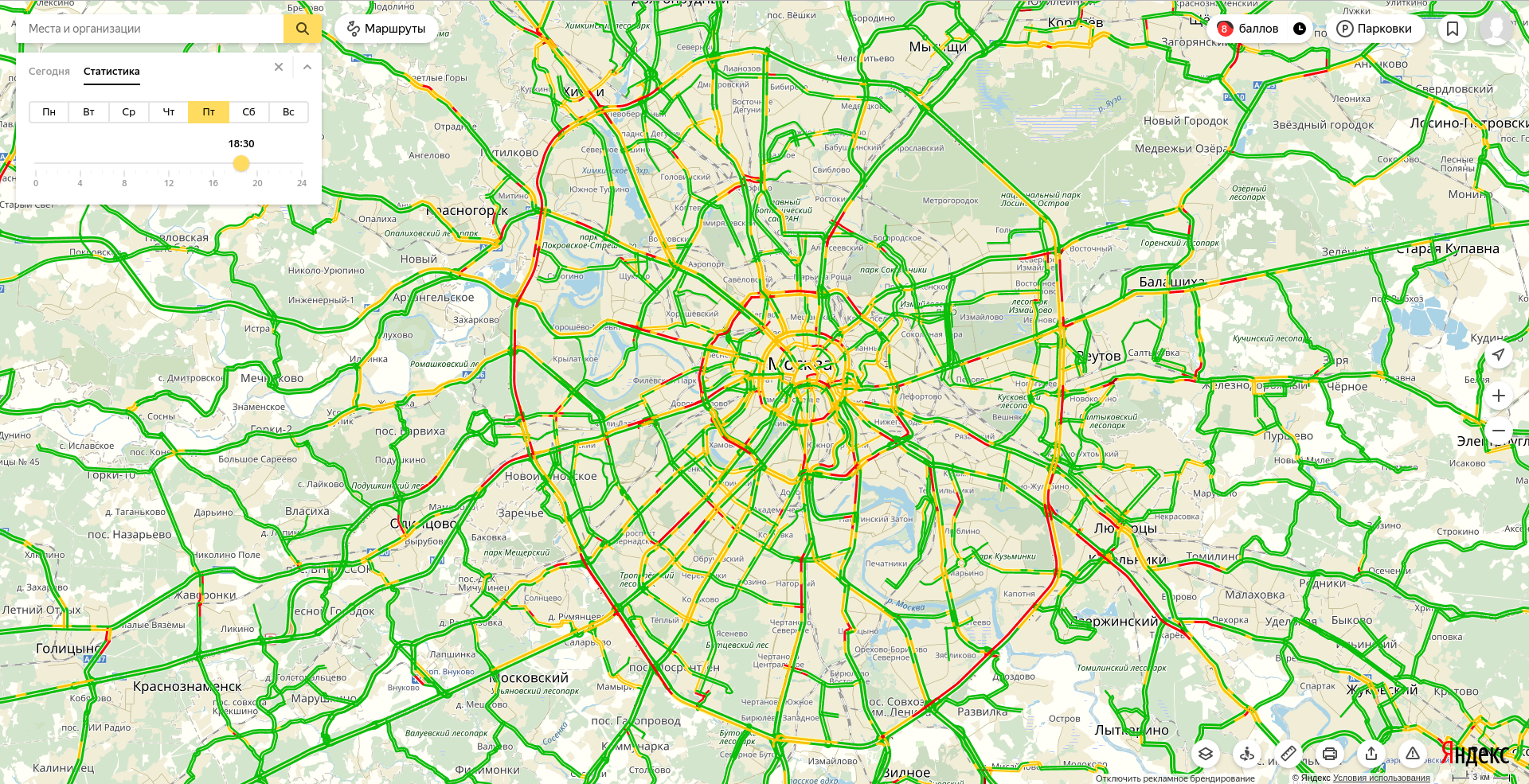 В час пик встают только определённые направления. Нормальные люди по ним давно не ездят.
