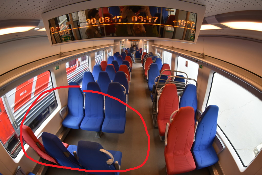 >>74000 Во-первых, есть вагон, где таких мест ещё больше, а не только у аварийного выхода. Во вторых, проход там такой же как и у мест лицом к спинке (два нормальных взрослых человека там не умещается, а ехать им 4 часа между тем). В-третьих есть ласточки без мест лицом к лицу. В-четвёртых, даун ты, потому что наличие аварийного выхода не означает, что можно планировать салон на отъебись и делать его неудобным, по крайней мере на местах лицом к лицу можно было подумать и сделать расстояние между сидений вдвое больше. В-пятых, есть всякие стрижи, где таких мест вообще нет, и аварийные выходы там расположены обычно. Обтекай.
