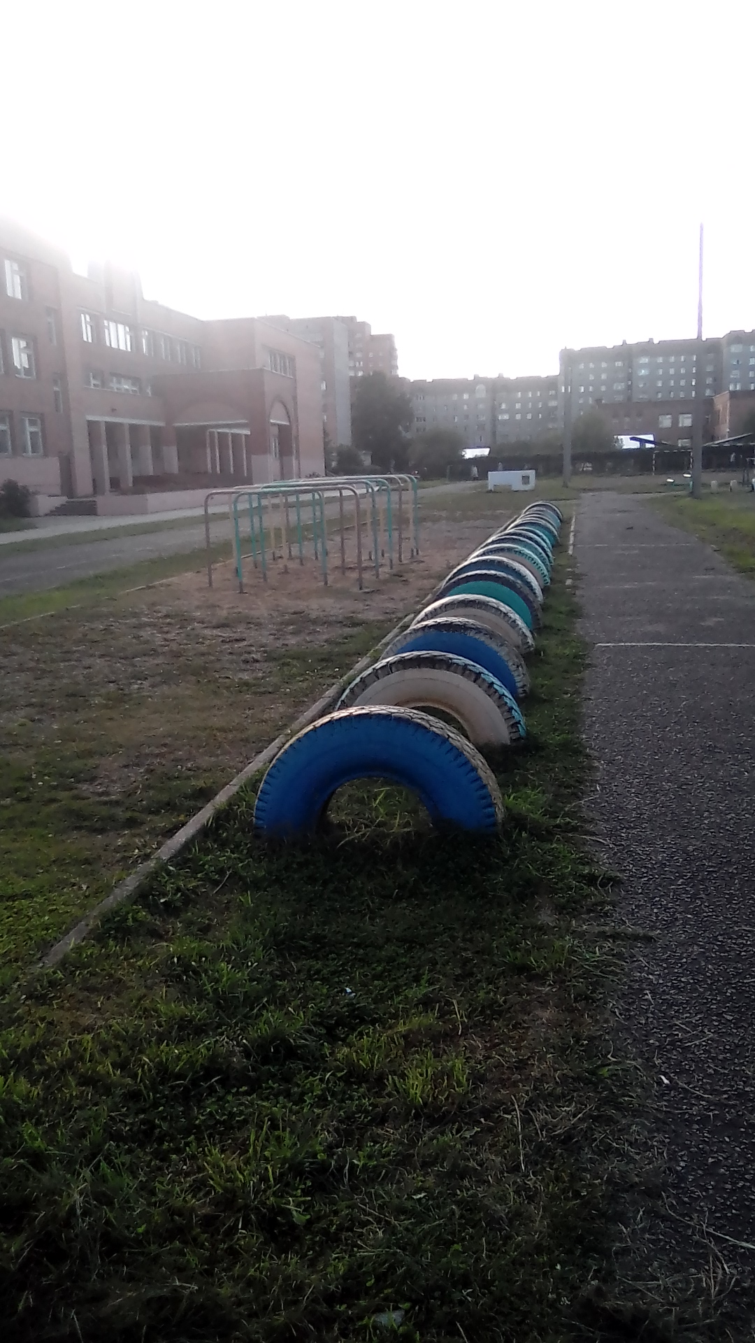 организация детской среды. 1 беговые барабаны. которые только здесь да ещё в гетто у Металлиста остались 2 шины. тренируют прыгать по гаражам и по крышам 3 турникеты по городской программе. однотипные и поставлены в половину дворов нового района, но кое-где встречаются и в центре. 4 ещё какие-то развлечения и непременно баскетбол