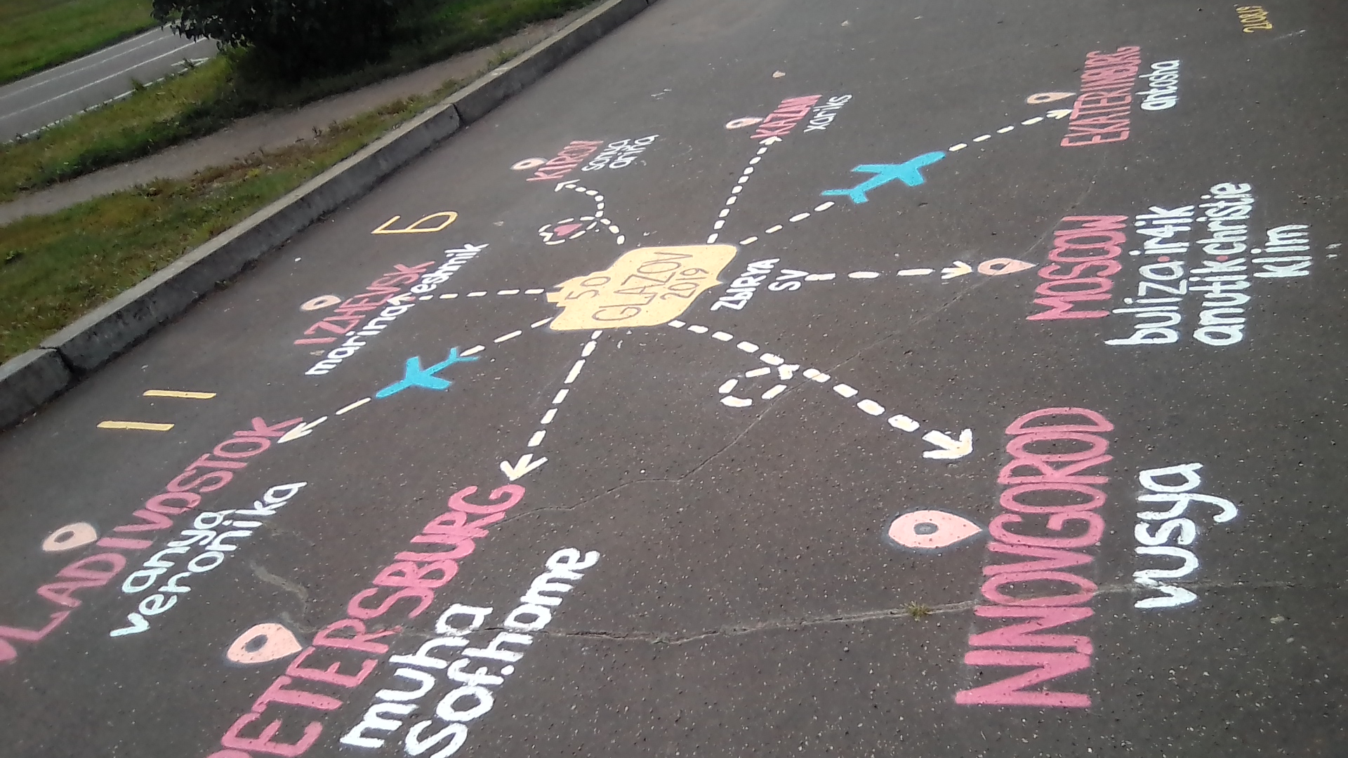 В неё поступают школьники со всей России, иногда из стран ближнего, реже дальнего зарубежья. Вот это вот выпускники разных групп выпуска 2019 рисовали куда они вернулись домой после окончания школы.