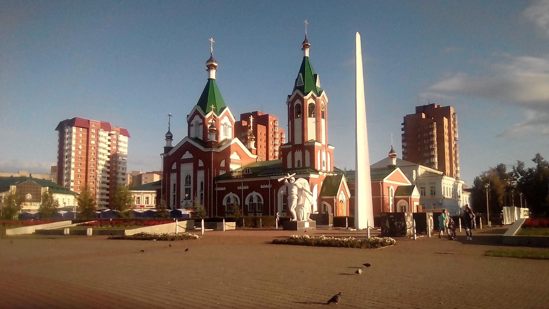 Ну и самая главная достопримечательность города: НОВЫЙ РАЙОН. Два квартала застроенных чистейщим авангардом со всеми присущими этому стилю излишествами, включая фасады жилых домов и даже в дорожках для пешеходов. Особенно удивительно что новый район построен в качестве ответной меры на атомную аварию которая приключилась на ЧМЗ в апреле 1986 года. Новый район строил стройбат с 1986 по 1990 гг, для расселения из зоны отчуждения ЧМЗ. Но выброса радиоактивных веществ так и не последовало - специальная пожарная часть справилась. В связи с чем район решили строить спокойно и в размеренном темпе, поэтому на нём и испытали авангард. Придумал так строить старший прапорщик стройбата Пехтин. На первой фотке - фрагмент улицы, получившей название в честь самого Пехтина. На второй - детский сад. На третьей - церковь адвентистов, которые уверовали во второй приход Иисуса на Удмуртскую землю. На четвёртой - торговый комплекс, обшитый современным сайдингом.