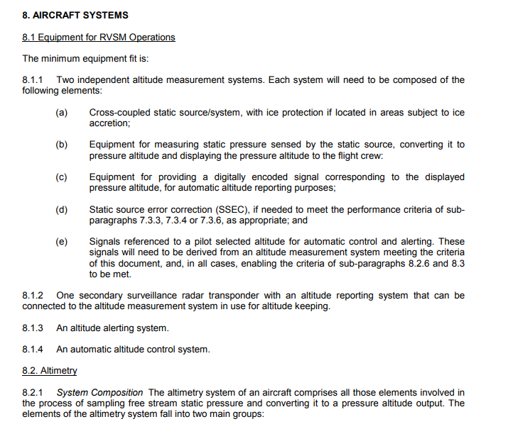 >>90342 Где я подобное утверждал? Вот требования JAA (на которые ссылается ICAO Doc.9574) по оборудованию самолётов для полётов в ВП RVSM. Где ты здесь видишь автопилот?