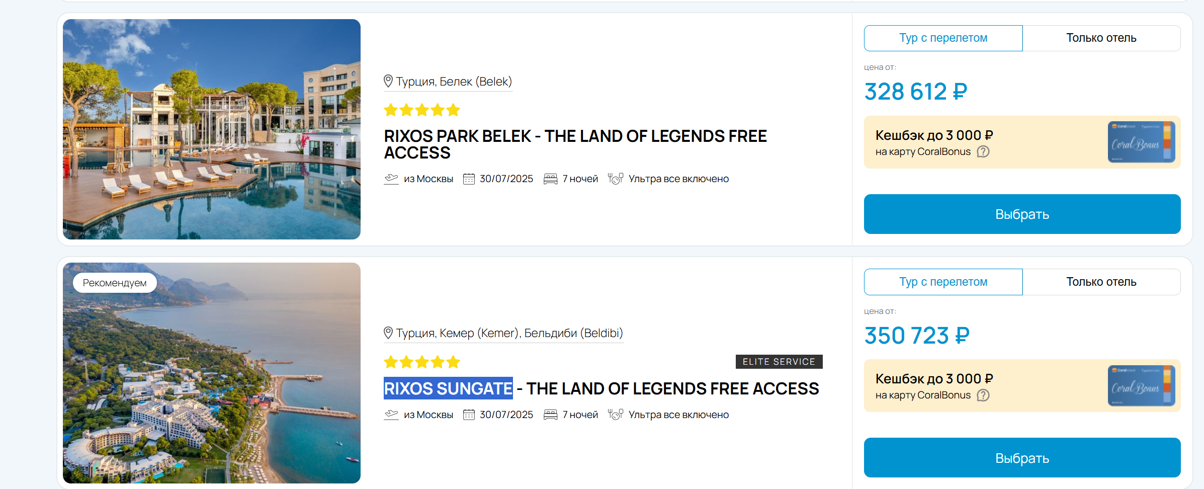 >>70870 Чел, тебе на метры в номере и состояние ремонта (офк если там не черная плесень с тараканами) поебать должно быть. Ты в номер приходить спать будешь, проводя остальное время на улице. Тебя должны интересовать в том или ином порядке: бассейн-пляж, развлечения, корм, алкашка. Ну а так вон я особо не искал, открыл одного известного туроператора, даже особо не искал специально. Вон те чуть дороже 300к риксосы продают. Если дотянешь до середины сентября, то тыщ за 200 по горячему уедешь.