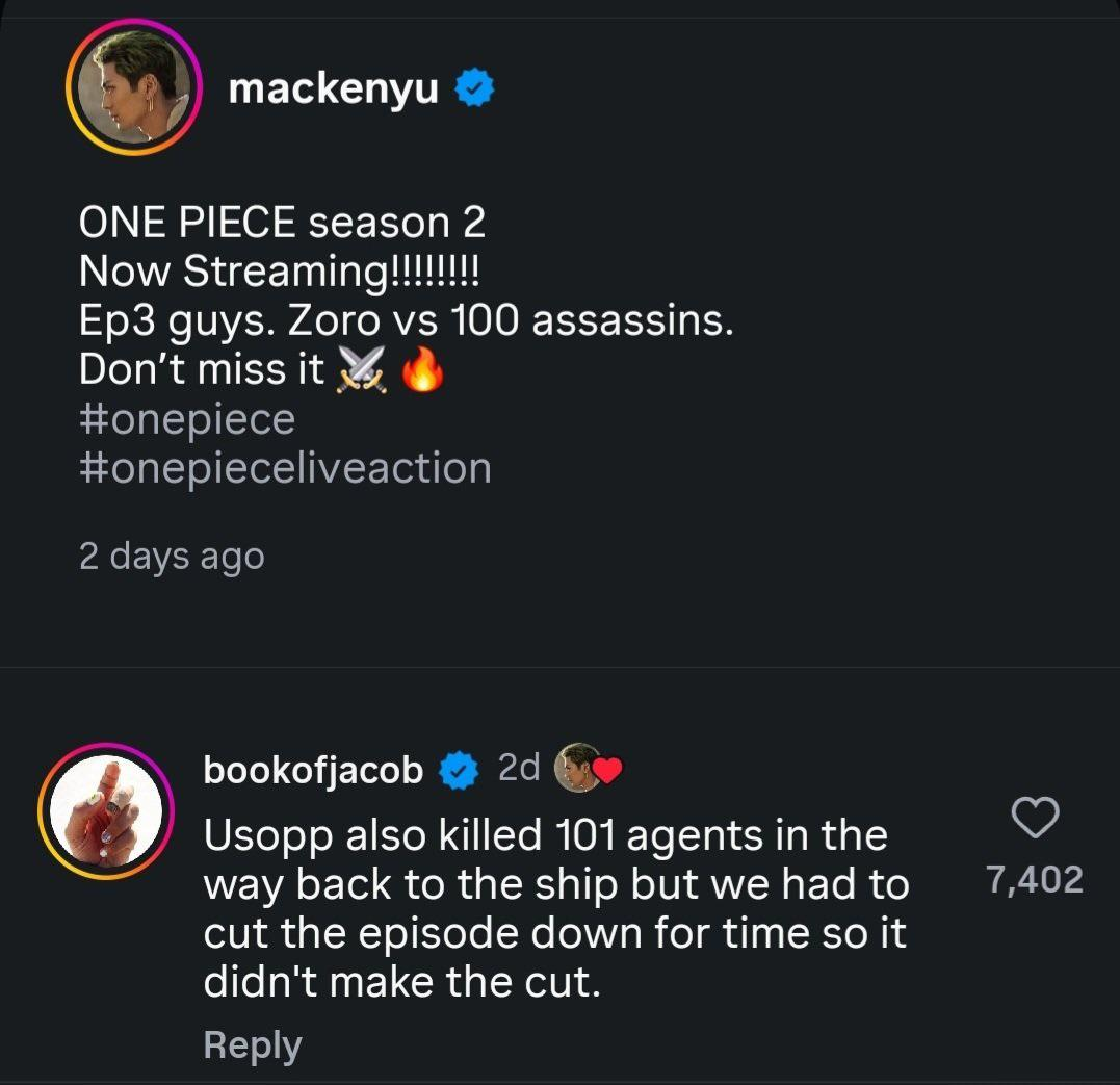 Посмотрел я серик. Во многом конечно это совсем другая история, но в целом у меня хорошее впечатление сложилось. Луффи конечно бомжом выглядит в плане навыков и статов на фоне противников, хотя наверное для лайф экшена подобное имеет смысл. Ещё у меня сложилось странное впечатление, что потихоньку начинают разгонять романтические линии виви-луффи (было наитие, что на динозавре верхом всё сводилось к тому, чтобы они засосались в итоге) и санджи-нами (хотя, там возможно и френдзона момент, так и не поймёшь). Да и санджи довольно дохуя подсасывают, то называют его мужчиной сваливым подбородком, которому тяжело отказать, взгляды нами, которая в моменте будто очаровывается им, его чувствительность выкрутили до максимума, а кринж до минимума. Персонаж конечно выглядит хорошо, если его независимо разглядывать, но не так чтобы похоже на оригинального. Вообще, по проблематике и внутренним конфликтам, ещё с первого сезона есть косяки, ощущение, что его историю просто скинули. Я ещё в первом сезоне не особо верил в его присоединение к мугиварам, а во втором данное ощущение у меня только закрепилось. При этом у Зоро с глубиной характера всё хорошо, хотя и вайб от него, скорее как от Саске в первом сезоне Наруто, чем от оригинального зоро из Ван писа. Но я не буду на это ругаться, имеют право по сути.