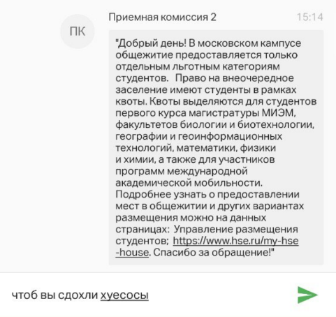 >>1012400 из чата одногруппников >>1012419 Пиздец, конечно. Ну не жаловаться, а звякнуть людям, указанным на dormitory-сайте, спросить что к чему. Они на hse-шные почты могут отвечать с лагом в пару недель. Ну и вродь такую штуку можно заполнить на будущее: https://www.hse.ru/dormitory/dormcom
