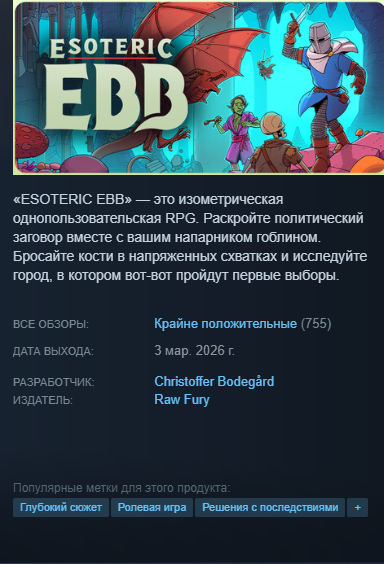 Наконец-то спустя годы вышла хорошая игра по подобию диско элизиума с голосами в голове,вариативностью,но теперь в сеттинге фентези,где герой должен выбрать свой путь в этом мире,обзоры крайне положительные.