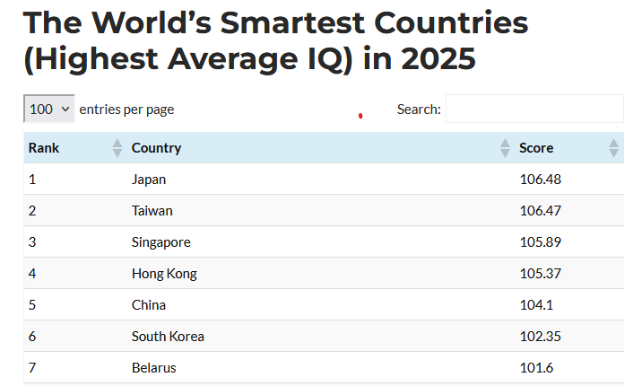 >>9948810 Во-первых у тебя неправильный график, на первом месте Китай и Ю. Корея. Во-вторых IQ это про решение задачек и обучаемость. С этим проблем нет, все азиаты хорошо рубят в математике и лихо крутят гайки на заводе, потому что легко программируются под определённые задачи. Да, прямо как жуки.