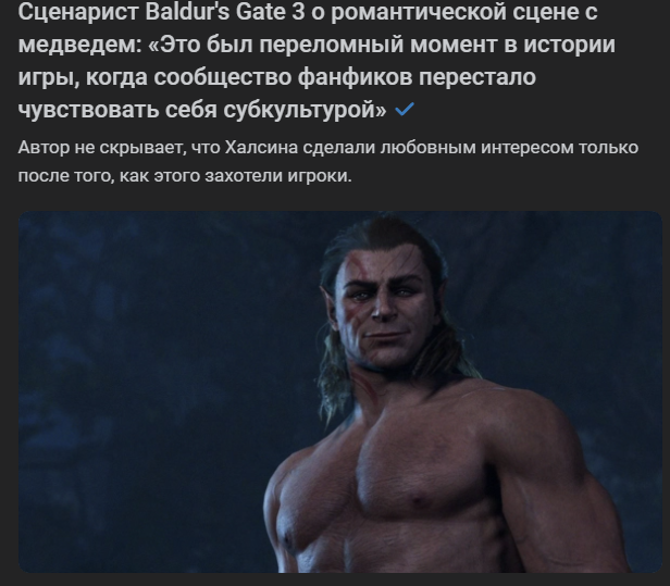 Впрочем, я потом прошел и БГ3, и тоже никакого секса с геями и медведями не видел. И вообще никакого не видел. Повестки в игре до хрена, это правда, особенно в жутком третьем акте с кучей трансов, пидоров, негроэльфов, лесбух и даже тыщами бедных несчастных беженцев, которых надо защищать от злобных злодеев, которые их понимаете ли из своего дома выгоняют. Потому что беженцы хорошие, а злодей куклы взрывающиеся делает, гнида. Я бы посмотрел на хлебало дебила Свинке, если бы он вернулся домой с какой-нибудь очередной конфы, а там у него десяток хачей проживает неделю. А спутники вроде не сильно лезут, по крайней мере бабы, мужиков я с собой вообще не водил, потому как нормальных мужиков-спутников типа Коргана или Келгара в этой соевой игре просто нет. Впрочем, и баб тоже нет, но они получше, чем мужики (ну, не считая конченой Карлахи). Ну, это игра Ларьян, там все персонажи- дно, лучше вообще в соло проходить, благо сложность в этой поделке ниже плинтуса.