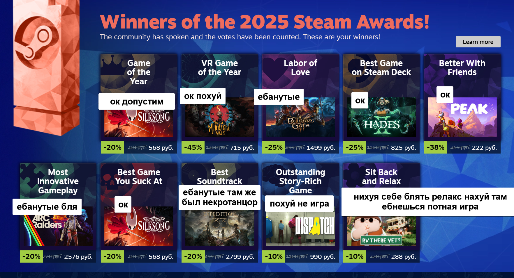 Короче в стиме напрашивается галочка, возможно даже за подписку, чтобы отсеять весь мусор. Типа тыкаешь галку и тебе показывают только игры которые имеют ценность, а не всякие симуляторы собирания бутылочек, недохорроры на 5 минут и слепленные на коленке убийцы скайрима и ведьмака. Заебало копаться в этом дерьме мусора