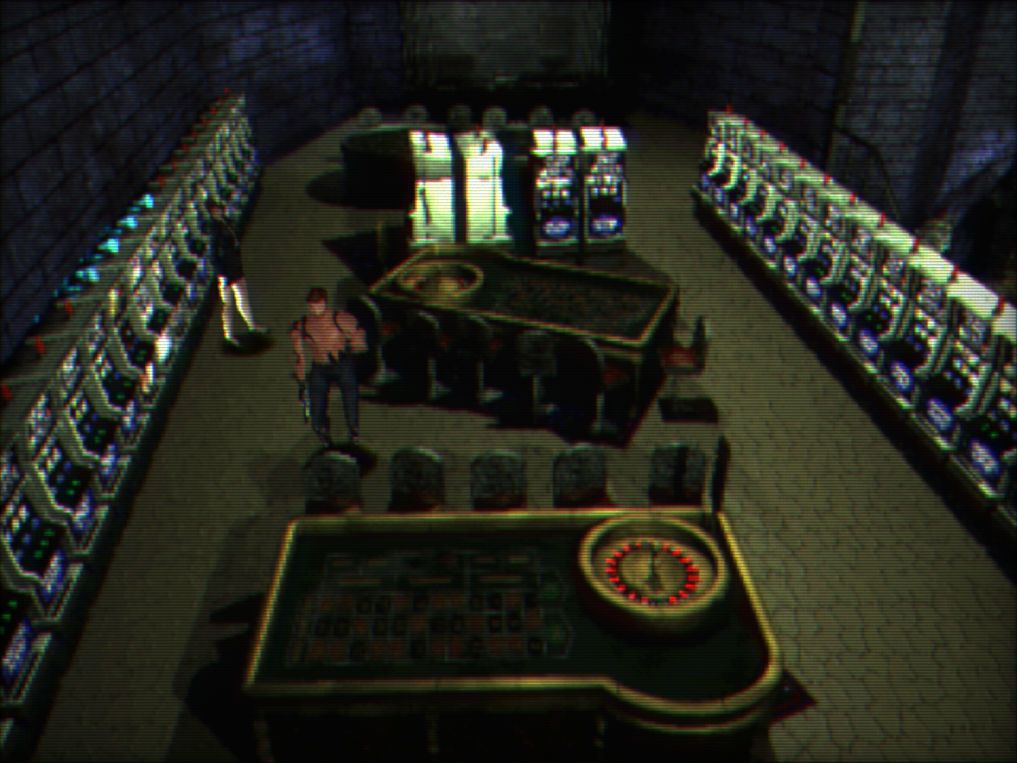 Что касается боевки, то это кал. Любимая фишка игры - поставить врага прям у входа в комнату, так что зайдя в нее ты сразу получаешь урон. Вторая любимая - навалить быстрых, огромных врагов в узких коридорах, так что мимо них хуй протиснешься. В некоторые комнаты даже заходя наготове, с дробовиком в руках и пальцем на R1, ты все равно обнаруживаешь себя в бесконечном станлоке. Если не хочешь получать урон, то нужно заранее знать в какую сторону сворачивать моментально после загрузочного экрана. Но это все обнуляется тем, что тут на каждом углу аптечки, так что ты в любом случае перехилишь весь урон, но это не отменяет хуевости боевки. Сделать все криво, а потом "исправить", раскидав повсюду аптечки = расписаться в некомпетентности дизайна врагов и баланса. Кстати, тут можно покупать аптечки в торговых автоматах, а покупаются они за монетки, которые выигрываешь в слотах и рулетке в первой локации. Там всегда играешь в плюс, так что я нажал ускорение в эмуле + турбокнопку до того момента, пока не выпадет 777 (потребовалось минут 5), после чего имел возможность выкупать все ресурсы из автоматов до конца игры. Тащемта это ничего не поменяло - я закончил игру с 10+ аптечками в сундуке, да и автоматов было всего парочка во второй половине. В любом случае, странно, что они вообще заморочились с добавлением слотов и рулетки.