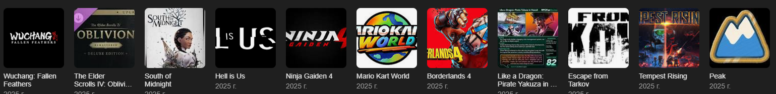Метал кал - нафф сейд Blue prince - паззлокал No, I'm not a human - стримербейтовый кал Donkey kong - кал для аудитории менее 3 лет или умственно отсталых уток из США возрастом 30+ лет Monster hunter wilds - опережающий время слепящий вин тысячелетия. Опередил он правда только своими минимальными требования все платформы, на которых релизнулся, поэтому в него можно кайфовать только с 22 фпса >Elden rign nightreign - задумка збс, но контента реально на часов 50 максемом >Avowed - куча повестки, но игорь сам солидный средячок. Классный эксплоринг и боевка Vampire the masquerade - рельсовый кал Assassin's creed NIGGERS - рельсовый воук кал Цива - для аутистов