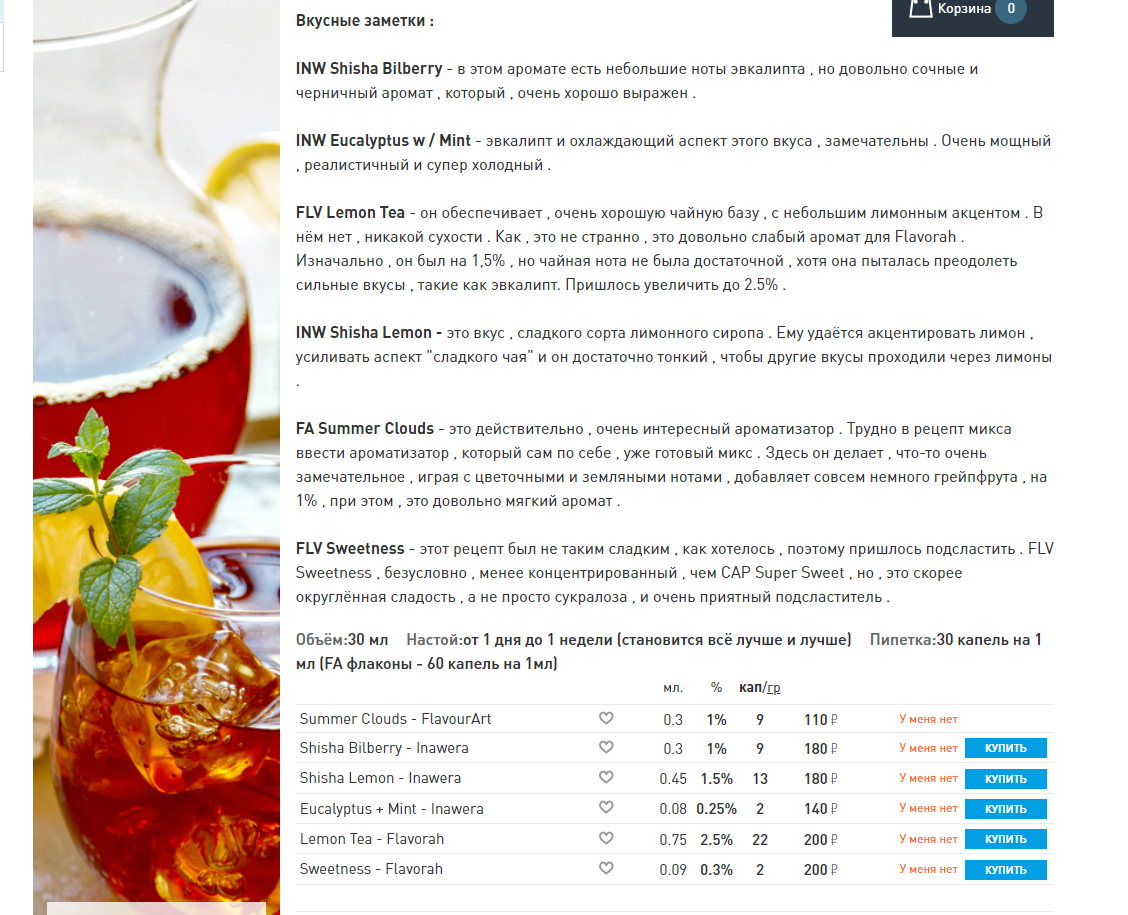 Если хочешь мешать сложные миксы, или найти уже готовые, то обязательно воспользуйся сайтом https://www.vapecraft.org/ в нем есть калькулятор самозамеса, ты можешь добавлять свои ароматизаторы или смотреть оценки на уже добавленные