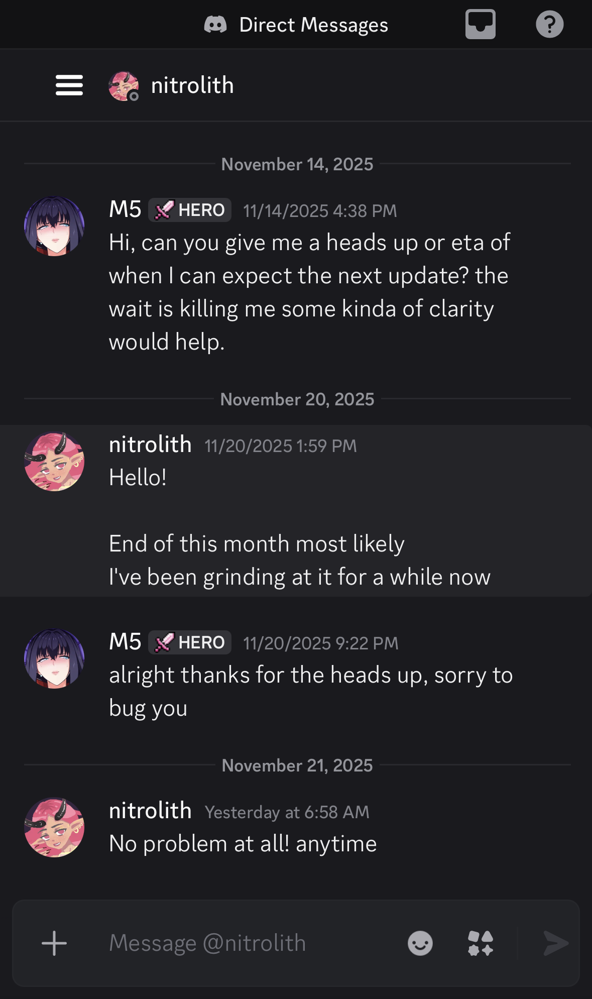 Разрабы эроигр "нормальными"! людьми не бывают по определению, это и так понятно. Но только сейчас начал углубляться в последний скандал связанный с создателем Энкоду Энкору (всеми любимая итт скрытый гем-гяру-игруля). И это какой-то пиздец. Уважал его за позицию "выпускаю сразу, как только всё будет готово - тогда и выпущу". По итогу имеем что? Релиз задержался на полгода от обещанного (или даже больше, игра про копчённую мильфу должная была выйти в конце 24), на данный момент представляет собой сверхбагованное уёбище 0.9 ле классик 82342. Так ещё оказывается что он высрал ОДНУ ТРЕТЬ игры, ибо только первая глава, из сюжетных трёх. Ну это просто инфернальная хтонь. Я уж думал обсёр асероля с их драконьей наездницей на коках и рекордными 3.4 на длсайт, где даже почётные "нихонцы-платим за всё" не затерпели.