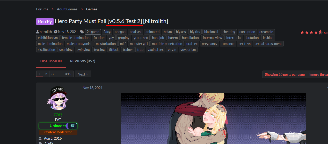 Безусловно это Hero party must fall, лучшая нетори с топовым корраптом на сегодняшний день, как минимум из западных так точно. Играем за Марса, демона который внедряется в пати героя чтобы найти возможность развалить её и прервать цикл насилия и убийств королей демонов. Мейн тянка игры это еще и один из двух маскотов треда. Там еще и осталось до финала ровно 2 патча, игра почти закончена.