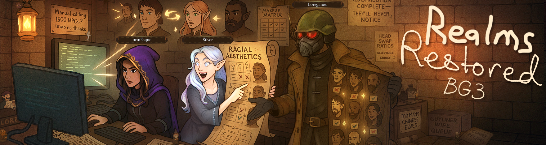 Поставил два мода на удаление геев, азиатов и негров из игры, стало гораздо приятнее, обязательно к установке всем. Еще поставил пачку модов на ребаланс спеллов фитов и предметов, слабые специализации заиграли новыми красками, но играть стало сильно легче, возможно стоит удалить.