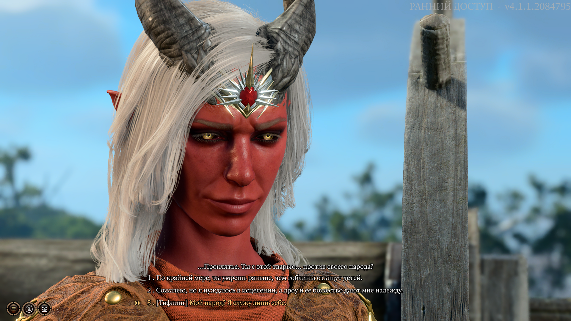>>50502189 >К ним приходят и говорят Разумеется, они это говорят именно в тот момент когда выйти за пределы рощи равно умереть. >Тифлинги же хотят убить хозяев Как же тебе нечего сказать по теме, что ты коверкаешь то что есть. Тифли хотят чтоб Тав убил гоблинов, чтобы у тифлей действительно была возможность покинуть рощу как их просят друиды. И да тифлинги уходят как только гоблины перестают представлять угрозу. Вот ведь моральные уроды да рощу себе прибрать к рукам хотят...