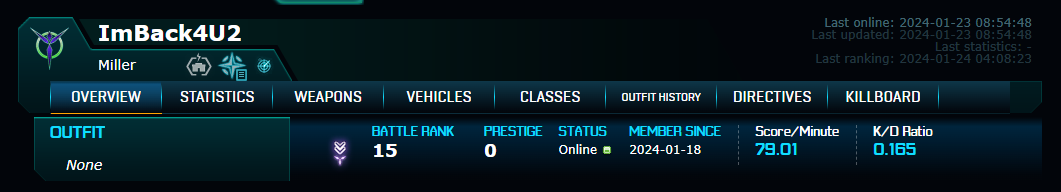 https://planetside2.com/players/ — официальная статистика, лучше ей не пользоваться