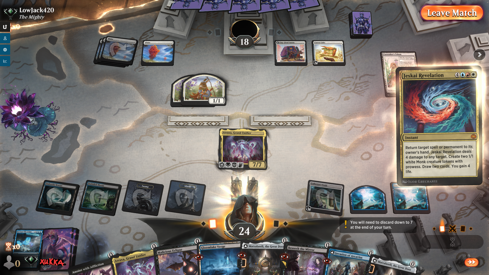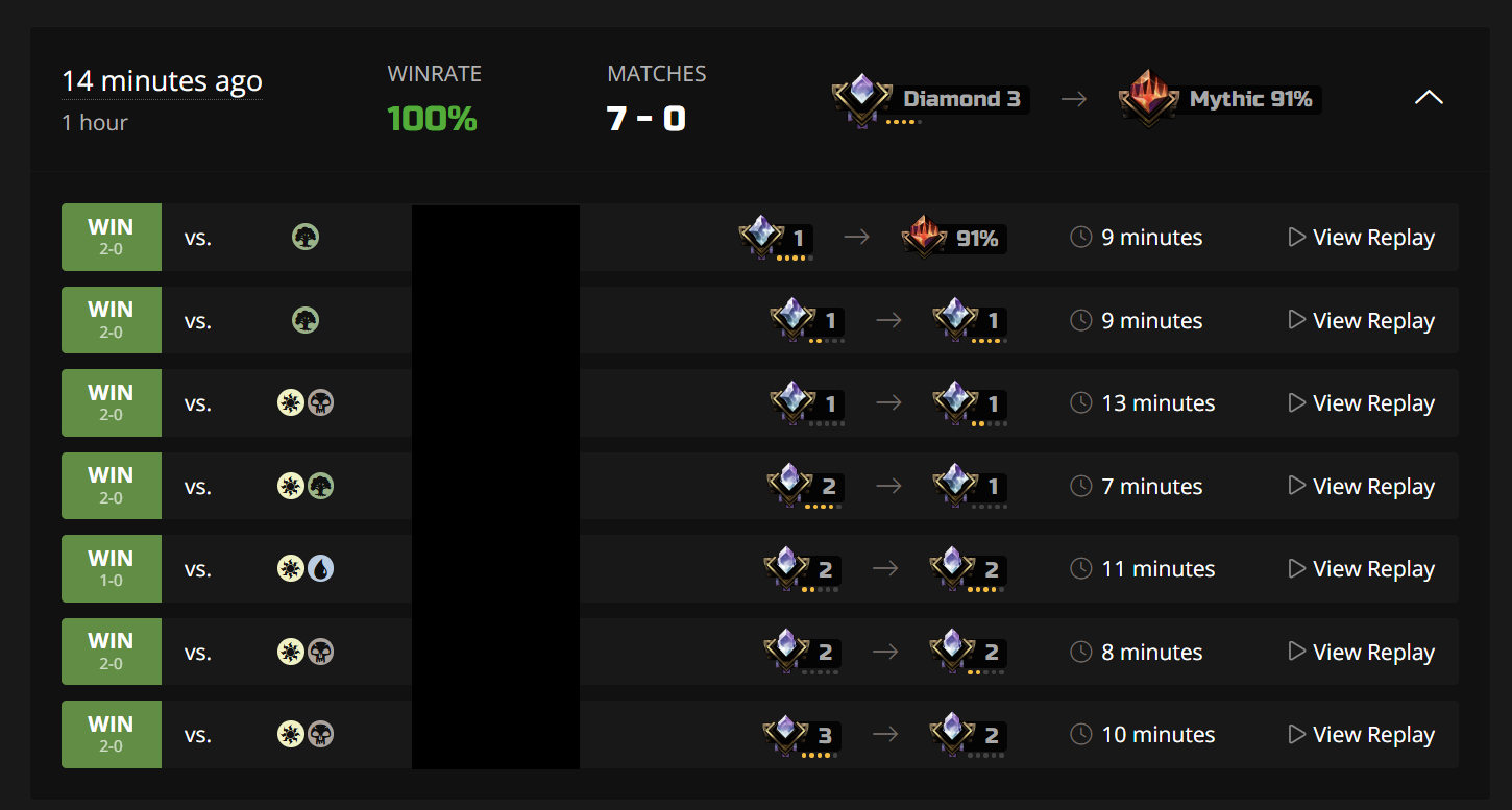 Заметил, что крайне много противников ливают на 0-1 ходу, как только замечают, что у тебя ракдос. Если бы не этот момент, не было бы там никаких 57% винрейта в среднем, который сейчас показывает на этой деке