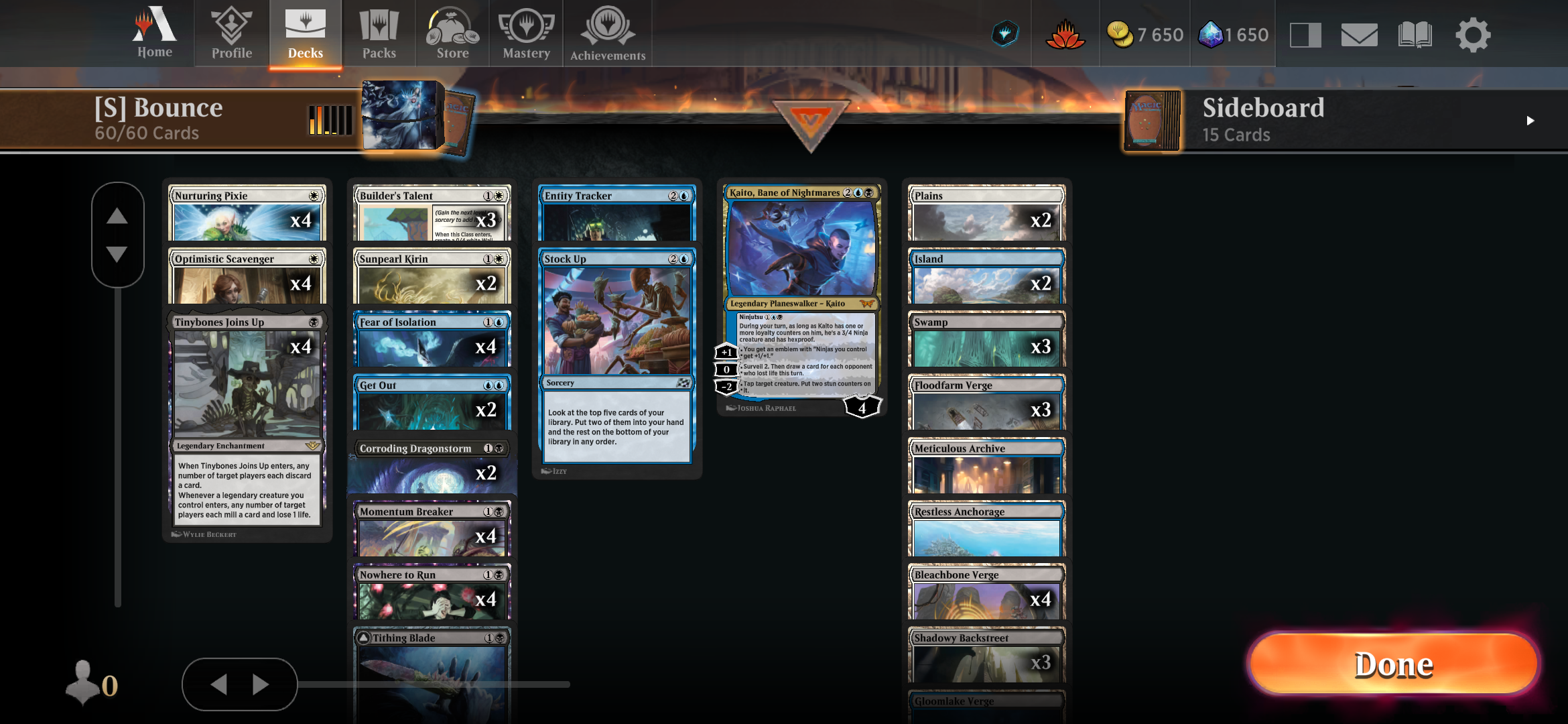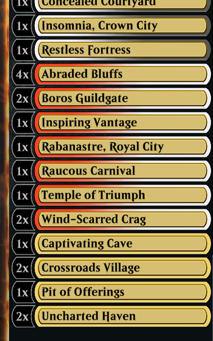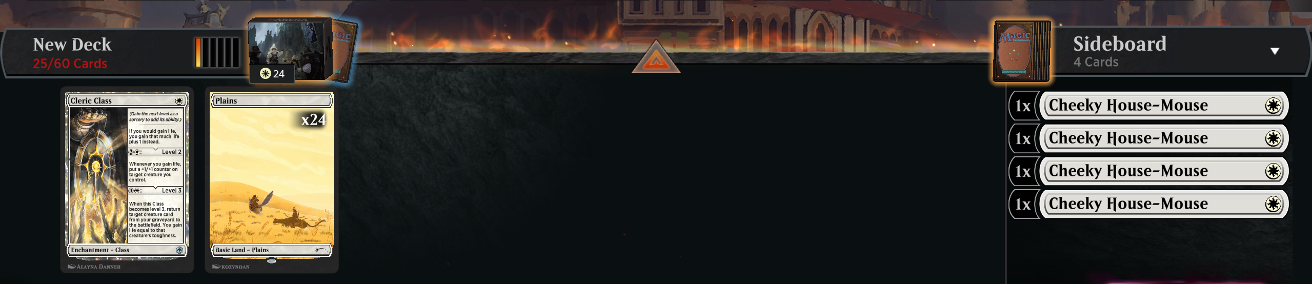 Умудрился доползти до платины но всё ещё не смог составить картины, какой на этих рангах метагейм, в какую сторону менять деку и вообще. Вот например Flamecache Gecco - насколько осмысленно его сюда положить? Или на драфтах по последнему сету разжился двумя копиями Fear of Missing Out - они зайдут, учитывая, что 3/4 делириума к 3-4 ходу собирается достаточно часто? Как бороться с энчантментами если ты в красном и вообще нужно ли это? Или вообще лучше не валять дурака, выкинуть всякую синергию с артефактами и собрать чисто красно-чёрных outlaws, раз есть парочка Laughing Jasper Flint?