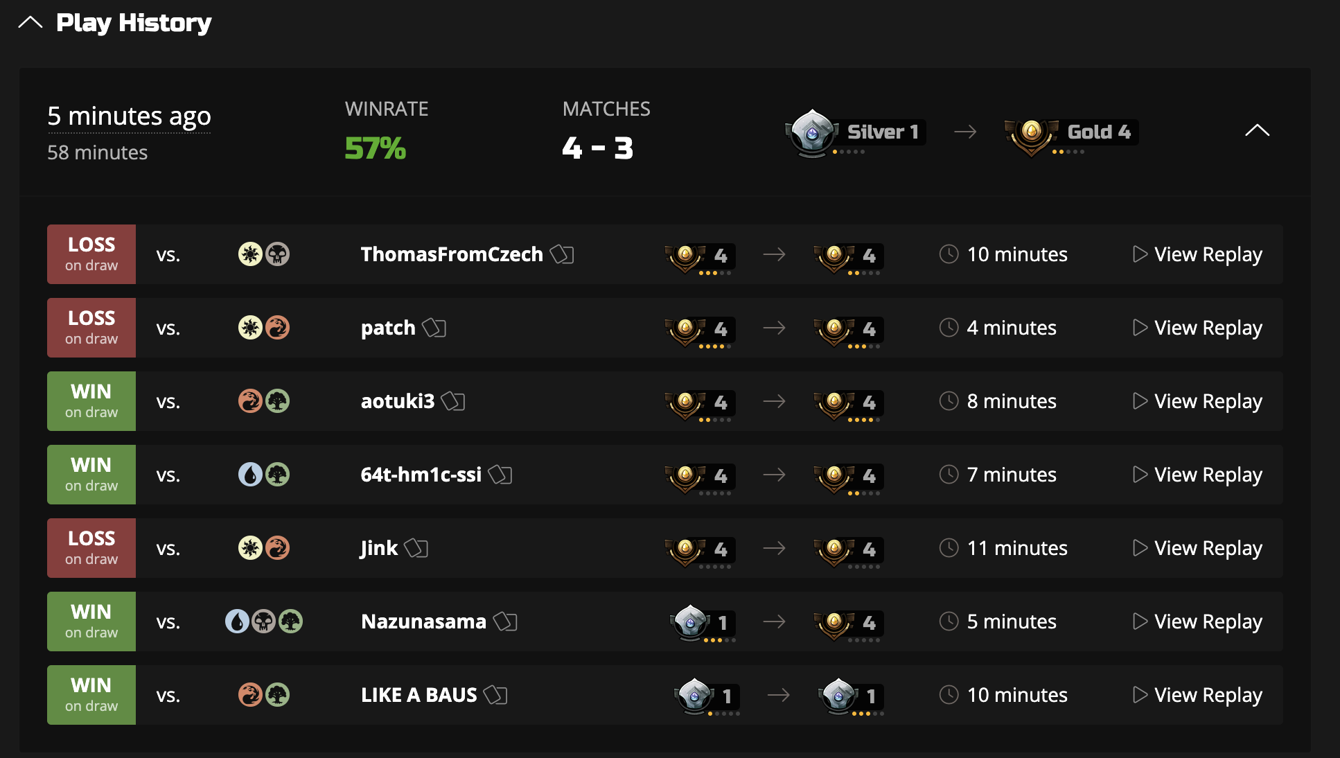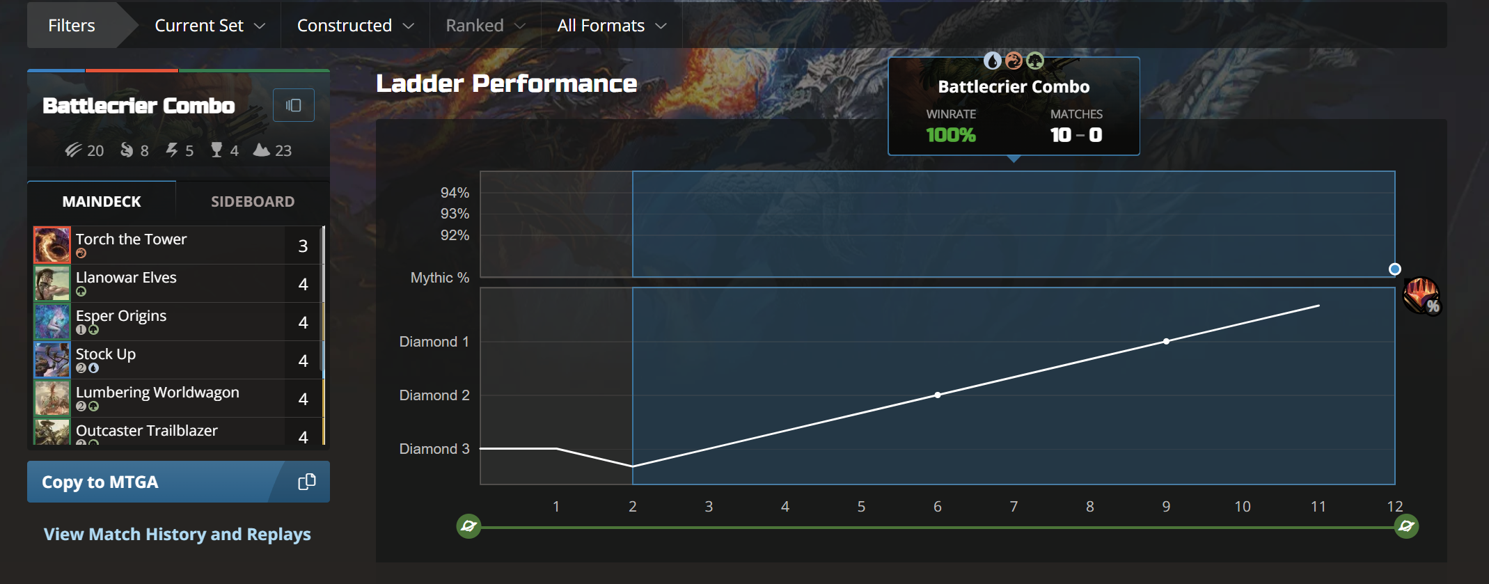 Трекеры: mtgarena.pro, untapped.gg https://www.17lands.com/ - трекер ориентированный на лимитед (есть инфа по мете драфта)