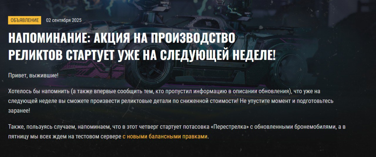 Через неделю нас ждёт: • новогоднее событие со специальным станком; • новое событие после завершения «Неожиданного союза»; • подарок • новое оружие (реликтовая автопушка?)