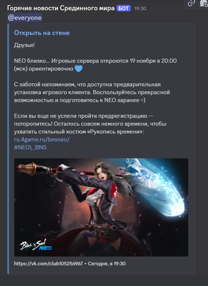 Мы рады сообщить о дате выхода Blade&Soul NEO! Копите силы, берите выходные и оформляйте отпуска, ведь 19 ноября мы начнем путешествие по обновленному Срединному миру! Также чуть позднее мы предоставим возможность предварительной установки клиента и обязательно сообщим об этом💙