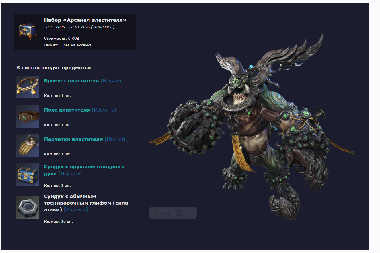 в лаунчере нажми магазин там есть бесплатные наборы арсенал пирата арсенал злодейки( возможно уже нету его) берешь все что бесплатное кароч и забираешь в игре