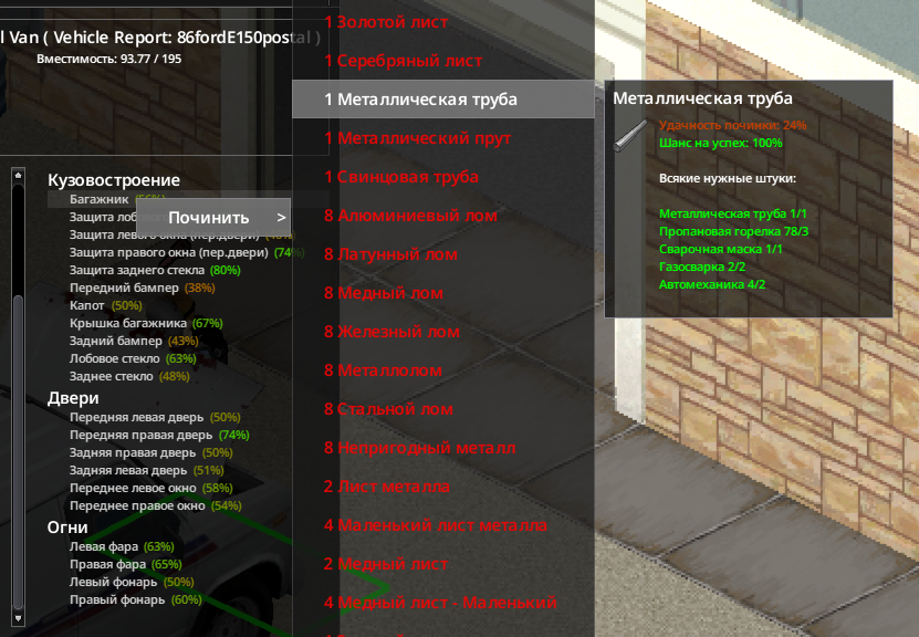>>50702133 В мультиплеере вообще всё на свете. В сингле наоборот, ноль ошибок, ноль багов, сборки на сотни модов работают как часы. Единственные баги, которые мне встречались, это: 1) Старт с дефолтным весом (80) вместо 70 с трейтом быстрого метаболизма. 2) Размер багажника в любом транспорте не может превышать 100 (или 130 с трейтом), правится модом. 3) Трейлеры телепортируются вместе с машиной в четвертое измерение или вообще в атсрал, если вышел за границы чанка и вернулся обратно. Но я играю с тачками от KI5, поэтому места хватает и без них.