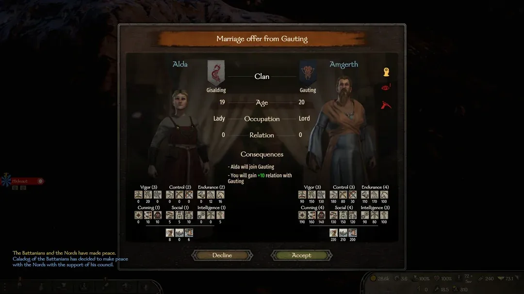 Короче пока так. Поборол соблазн в четвертый раз начать за баттанцев. I believe in Battania supremacy Начал нордом - охренеть у них имбовый т1 юнит, сразу со щитом. С какими ещё т1 челами можно выиграть 15 на 15 лесных бандитов лол. Долго смотрел на цены на корабли. Потом смотрел на низкое благополучие нордских городов и что ловить в этих землях практически нечего... Короче весьма каноничное событие с точки зрения истории когда да чувствуешь что вынужден покидать родные земли ради богатств и мечта - это драккар, да ладно какой там, просто самая дешёвая лодка для торговли спойлер - не для торговли Потом понял что у нордов нет конницы. Приуныл. Сам с коня слезать не стал, иногда только. Есть кста люди которые фулл через атлетику играют для максимального вайба? Хочется иногда, но я не выдержу пешком каждую битву пять минут до противника бежать... В общем отправился к хузаитам, купил там лошадей для скорости отряда. Кстати, в копилку идиотских моментов и разочарований - викинги рядом с монголами. Пиздец. Алсо лорды у нордов выглядят абсолютно также как у стургов. Такая халтура! Акшуааллии, по лору так и должно быть... Стал наемником, пошли пропускать стургов, весьма успешно. После стургов купил себе сразу две лодки по 15к. Потом объявили войну баттании и тут коса моя нашла на камень. Я был слишком самоуверен после победы 50 на 80 у стургов и проебал 50на60. Причем у врагов осталось два воина. Там в конце было что-то типо 4на5, 3на4, 2на3... Это были очень жёсткие эмоциональные качели... Что мне абсолютно не понравилось - так это то что нордская армия ходит пешком. И что никто не пришел на фан встречу - никто не пошел со мной воевать с баттанией. В прошлом прохождении к слову меня убили почти в начале и 60-70% игры я играл за Корейн мой первый плен был к грабителям спустя несколько минут от начала игры, так что чувствую себя хорошо, что попался в плен только один раз и к лорду... Это копиум, я не чувствую себя хорошо, я сожгу каждую их деревню. Насчёт убийства лордов пока в раздумьях...