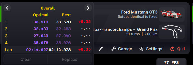 Думаю стоит задрачивать отдельные участки, а не всю трассу. Очень нехватает именно такого режима в ацц, чтобы раз за разом хуячить один и тот же поворот. Еще сильно не хватает стабильности, я уверен что в ране на 1:53 я каждый участок в других ранах проезжал быстрее, просто вот тут сложилось среднее выше
