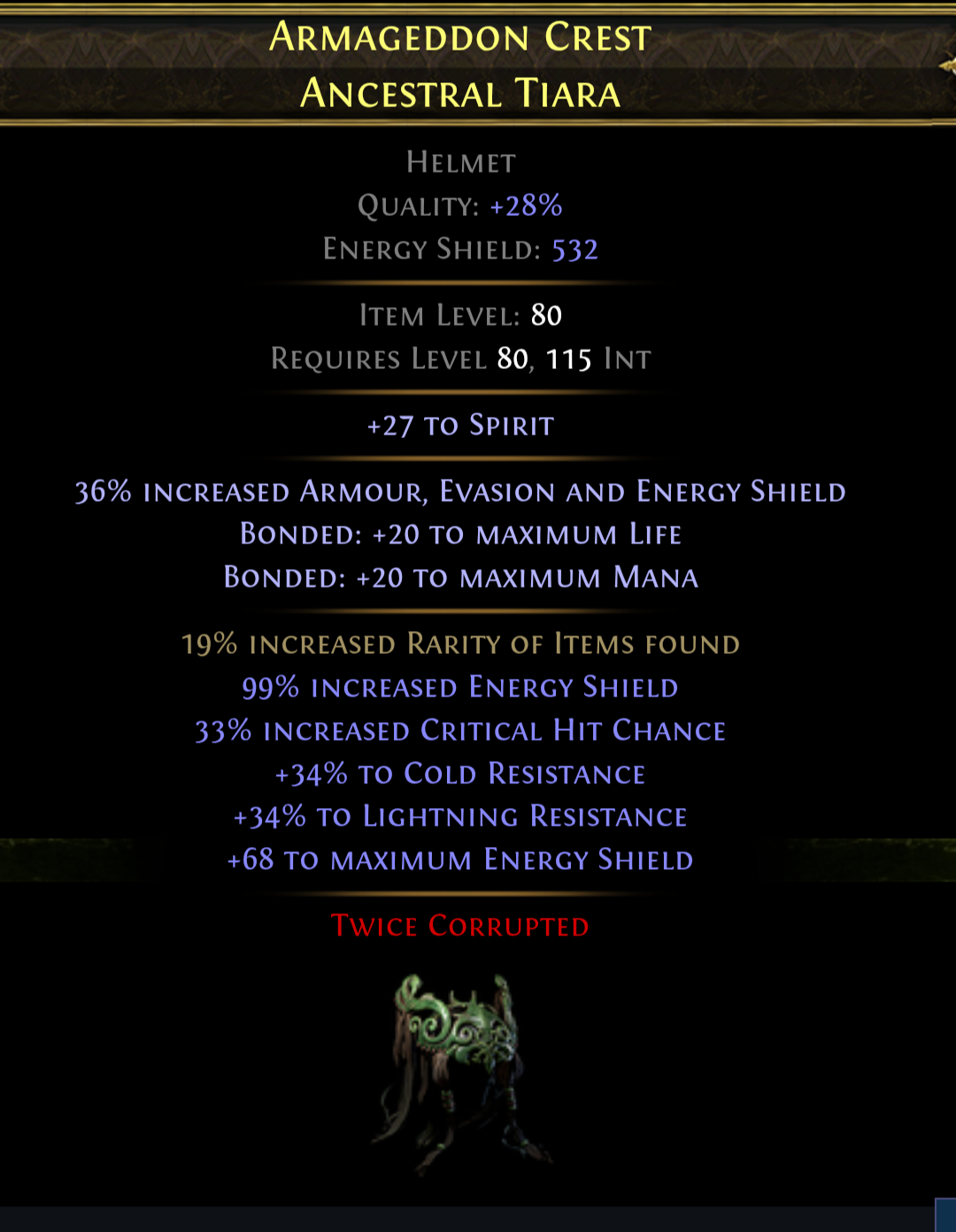 >>50640147 Ты прав, крафт это везение и влив валюты. Задёшево зеркало не нафармишь в хайдауте. Амули вот, их тоже заёбно делать, там надо через катализаторы ебаться. Я фрактурю дух чтобы камни были свободные в надежде на +4. А с шапкой мне просто тупа повезло.