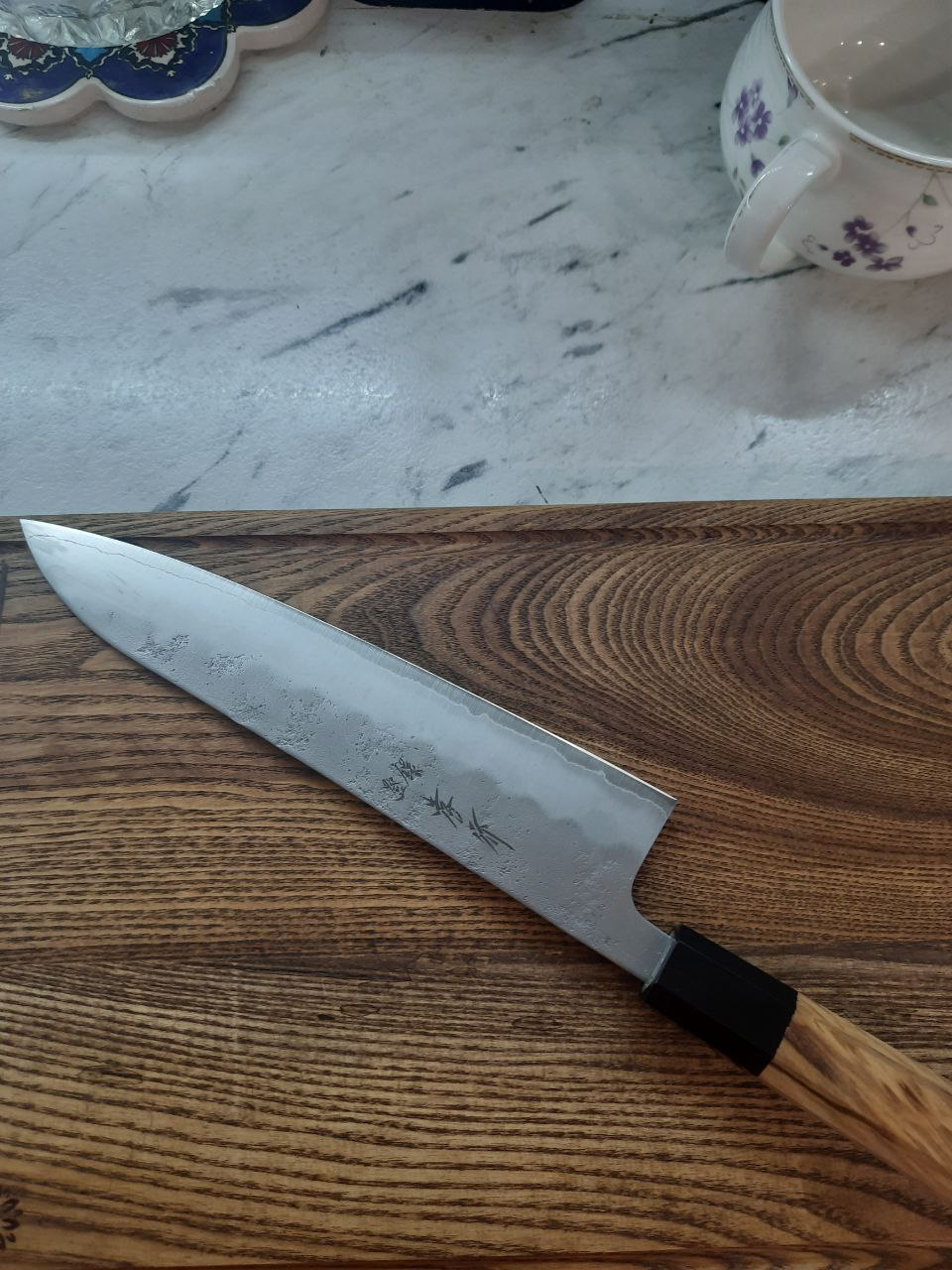 >>982980 Мде, конечно. Ручку япнонского типа на такую залупку не поставишь. Либо точить и наваривать хвостовик нормальный, либо сделать ручку из двух половин твёрдой древесины или композита с похожей формой на ту, которая там была, с заходом на лезвие, выточить под форму ручки, вставить стяжку или штырь в отверстие и залить эпоксидкой, надеясь, что будет работать.