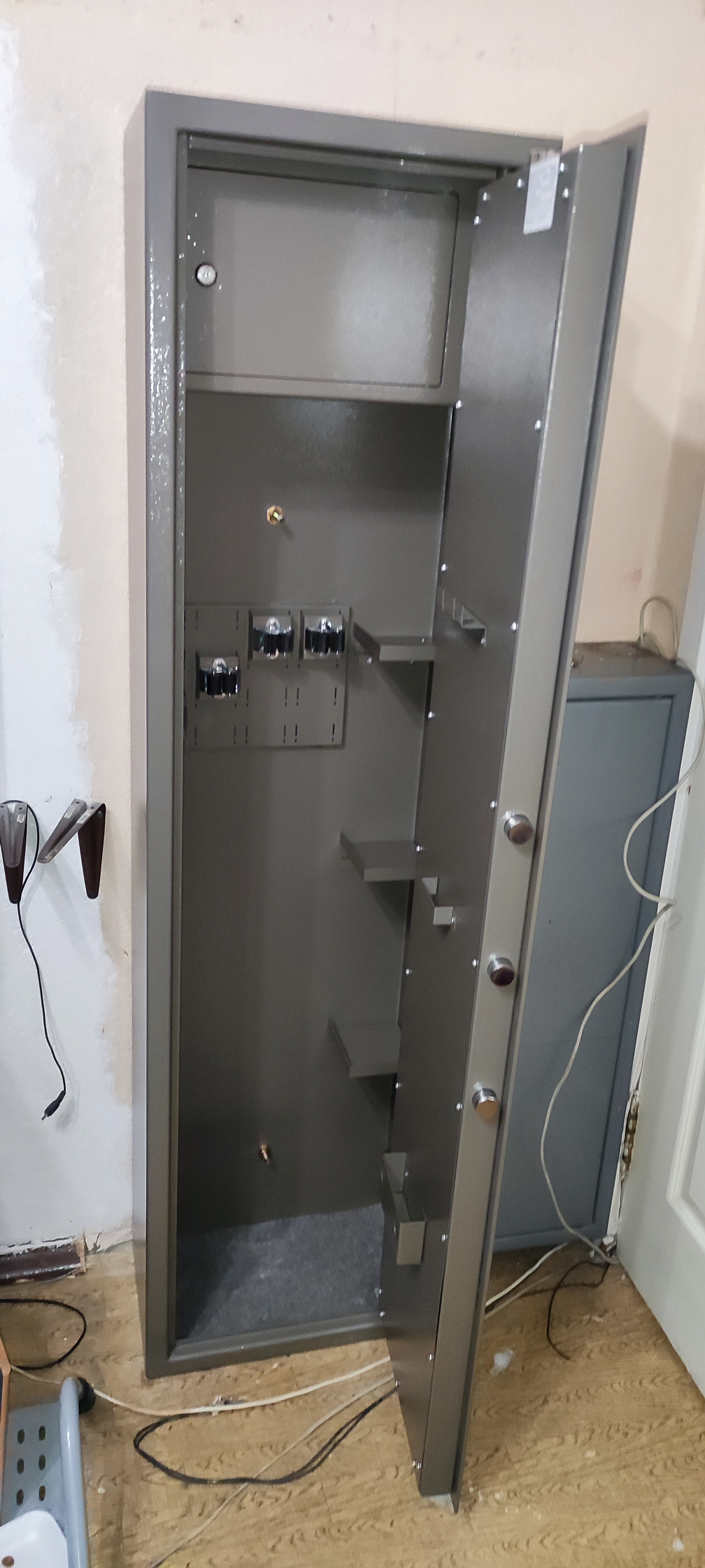 Фото выкладывать не буду, но мой сейф спрятан в шкафу. Ключа нет, только код. Помещается туда только 3 единицы и 1000 патронов .223, и доставать пиздец неудобно, но я лучше буду спать спокойно зная, что уборщица не знает, чем буду иметь охуеть возможность достать его быстро для самообороны. Кроме того, карабин для самообороны — хуевая идея.