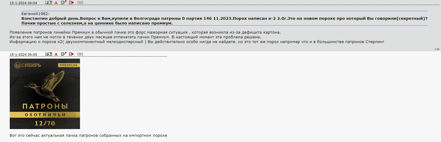 Обратил внимание, что появились новые патроны СИБИРЬ ПРЕМИУМ по достаточно высокой цене. Напомню, оригинальная СИБИРЬ была полным говном на отечественных комплектующих, но и продавалась по 39-41р за патрон. Сейчас же выпустили премиальную линейку, но мне не удалось найти НИЧЕГО премиального, лол. Единственное, что привлекло внимание, так это новый порох. СИБИРЬ использует обычный низкокачественный Сокол. В премиуме же теперь некий порох К-2. Что это за порох, я даже примерно не знаю, не смог нагуглить. Но даже если это норм порох, то цена всё равно не оправдана, ведь за такую цену можно купить Azot Сибирь с импортным Нобелем, а если чуть-чуть добавить, то уже хорошие турецкие Sterling и Meca, которые даже стволы не засирают.
