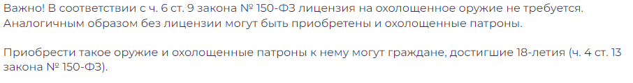 >>901356 >вы обязуетесь зарегистрировать факт покупки Это не лицензия. Это регистрация. Лицензия это когда ты собираешь бумажки чтобы получить бумажку позволяющую тебе купить что-то. Регистрация это когда ты уже купленный товар регистрируешь как свою собственность. Для огнестрельного оружия нужна лицензия, а потом оно должно быть зарегистрировано. СХП нужно просто регистрировать. Т.е. покупаешь просто так по паспорту, но потом обязан оповестить Товарищ Майора что у тебя завелась такая игрушка