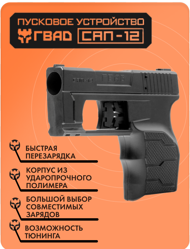 ГВАД САП-12 – универсальное однозарядное пусковое устройство российского производства. К его основным особенностям относятся современный компактный дизайн, надежный УСМ и быстросъёмный механизм смены зарядов. САП-12 – первое устройство бренда ГВАД, вместе с ним компания анонсировала производство собственных картриджей и аксессуаров.