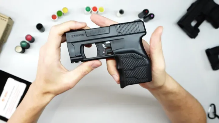 Продуманная эргономика. Устройство имеет габариты 111×133×29 мм и вес 165 г. В рукоятке предусмотрено ношение двух дополнительных зарядов, а также на тыльной части есть антабка для установки страховочного тренчика. Надежный хват устройства обеспечивают насечки на рукоятке и «пятка» под мизинец. Безопасность. При заряжании устройства боек не взводится. Это обеспечивает безопасное ношение: при падении устройства срабатывание исключено. Быстрая перезарядка. ГВАД САП-12 оснащен быстросъемным механизмом смены зарядов. Перезарядка занимает менее 5 секунд. Возможность установки тюнинга. В комплекте с устройством идёт клипса для поясного ношения, которую можно установить как на левую, так и на правую сторону. Есть планка Вивера для установки осветительных или прицельных приспособлений. Доступность. ГВАД САП-12 не является оружием и не требует лицензий и разрешений на приобретение. В ГВАД САП-12 конструкторы сознательно отказались от многозарядности ради компактности, эргономики и надежности. Это однозарядное устройство с быстрой перезарядкой и простым, «неубиваемым» УСМ – ровно столько механики, сколько нужно для стабильной работы в реальных условиях.