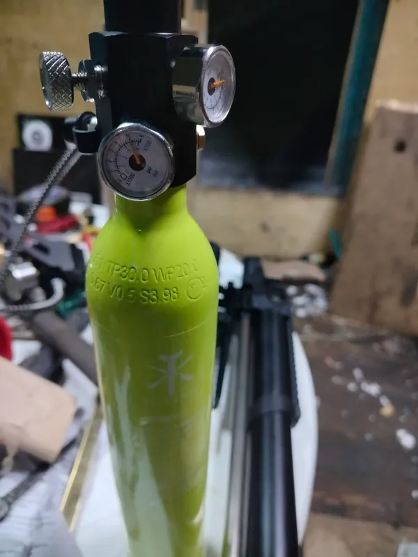 А вообще, в принципе, можно было бы и хуй забить, мол накачал и пострелял нормально, ну уйдёт немного воздух и хуй с ним... Но мне изначально надо было, чтобы давление в накаченном пестике никуда не убегало блин, пока пестик неделями будет лежать без дела. Я хз, такой бы уже купить ещё один резик, на 32, как потенциально более надёжный, сразу его проверять в тазике с водой, чтоб ничего не травило. А резик 42 пусть будет как ёба запасная для пострелух одного дня. пы.сы. Напечатанная на 3д принтере ёба для стрельбы "одиночными" встала на место нормально, но нуждается в доработке, ибо на гвоздике делать крепление это как-то несерьёзно.