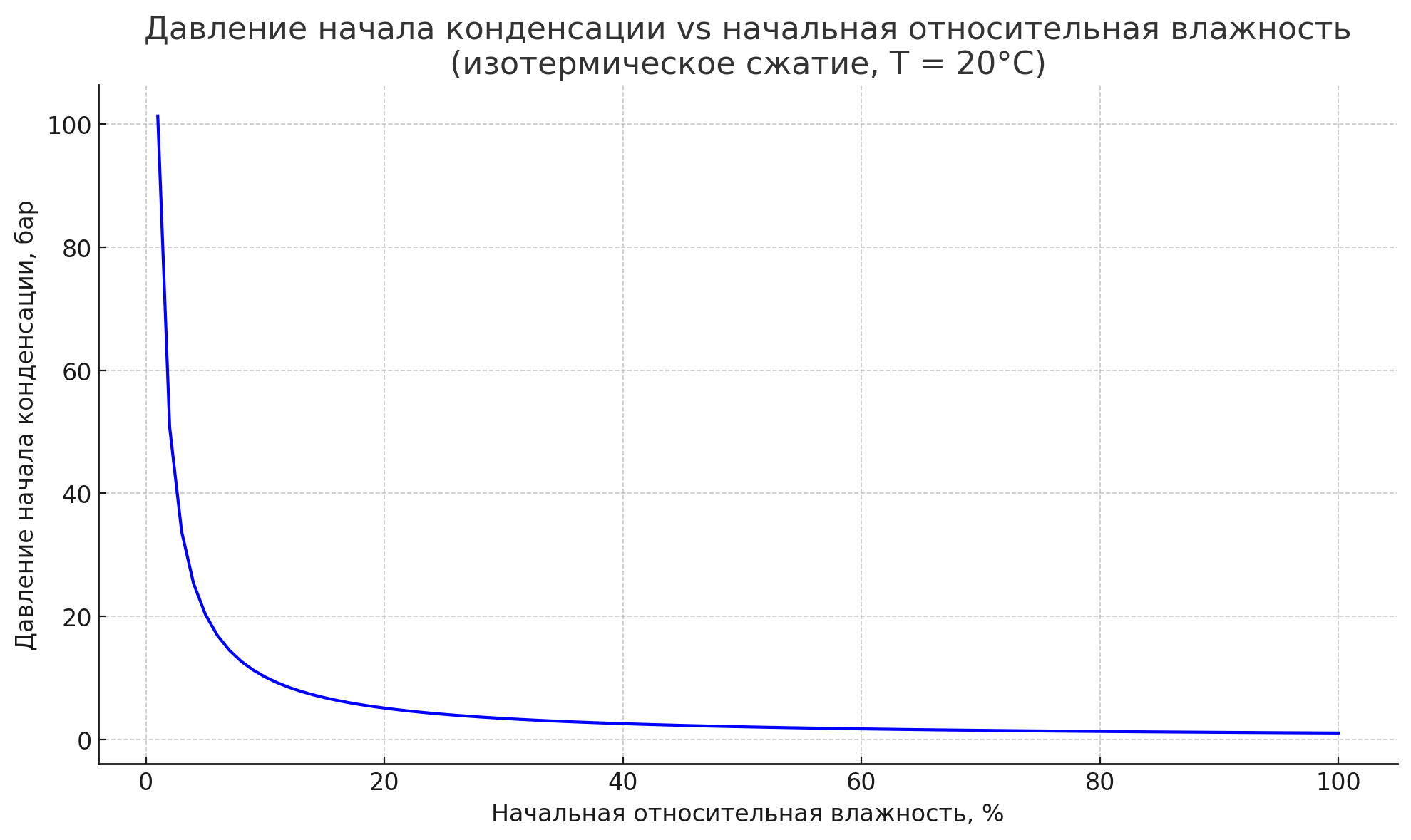 Влагу необходимо удалять после сжатия, потому что она выпадает (конденсируется) в процессе сжатия. Грубо говоря, сжав воздух с атмосферного давления до 200 бар, ты сжал воздух в 200 раз, а кол-во влаги в нём осталось прежним. В цифрах: забивая насосом зимой в отпаливаемом помещении, с отн влажностью воздуха 30%, у тебя начнёт выпадать роса уже на давлении 3,5 бара. Забивая летом, с отн влажностью воздуха 50%, роса выпадет уже при 2 барах (!) Допустим, ты сделал супер пупер крутой осушитель прямо из духовки и он мифически осушает тебе входящий воздух с 50% до 25%, это значит что у тебя роса выпадет не при 2 барах а при 4. А жмешь ты до 200. Помог тебе твой осушитель?