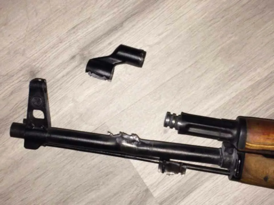 Дальше я захотел его разобрать. Цевье снялось легко. Оно крепится на гайке. Под цевьем оказался номер - 003Е-2003. -2003 это что, год? -Нет, это просто система номерации у них такая странная. -Ок, загуглю потом. И сварные ШВЫ.