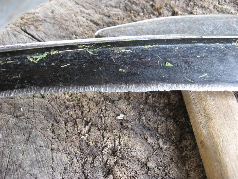 На лугу сено могут несколько часов к ряду косить, пока совсем роса не спадёт. Подтачивают соответственно тоже постоянно. Неровность на полотне после отбивки сходит очень быстро.