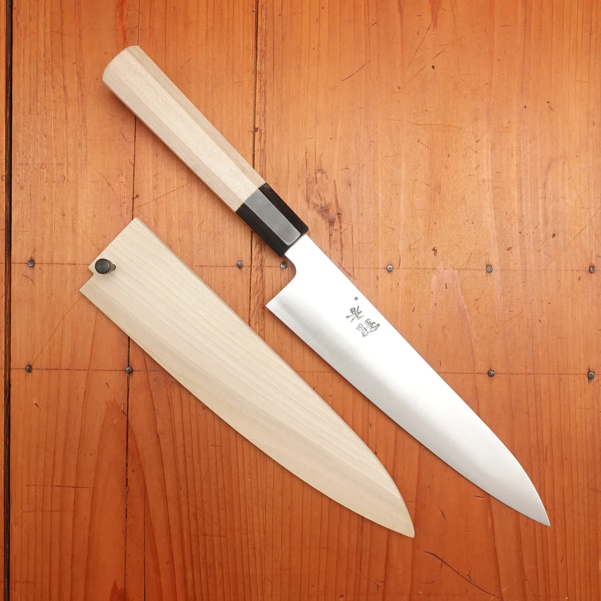 >>994348 Я бы тоже в 10 случаев из 10 выбрал второй нож. Первый нож — шеф Wusthof Classic IKON 20 из X50CrMoV15 в 57-58HRC, весит 270 г, ну такое, эргономика POM ручки на любителя и по хвату не универсальная, вес большой. Из достоинств — санитарный сертификат и условная возможность мыть в посудомойке. Второй нож — Ashi Hamono Ginga Stainless Gyuto 210 (может и версия из Shirogami#2 в 61-62HRC, по мелкой картинке трудно различить, но скорее всего на твоей пикче из нержи, углеродка блестит иначе). Сделан из моно AEB-L в 60HRC, весит чуть более 100 г и это просто отличный нож категории "если бы ты мог оставить только один шеф-нож".