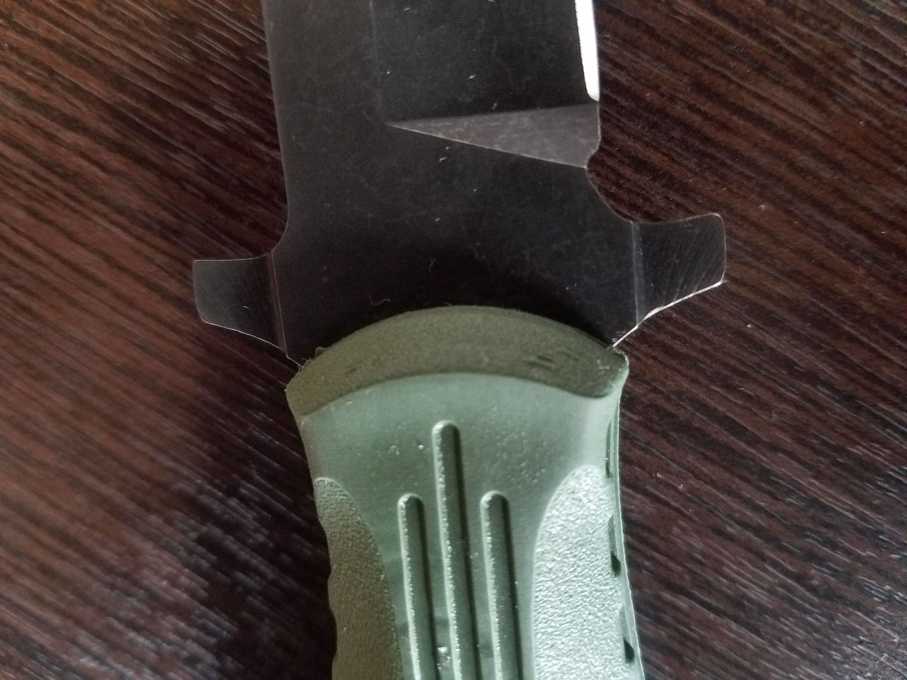 НР-18 нож всё-таки бюджетный, из того что мне не понравилось: Эластроновая ручка (на ощупь твёрдый ластик) пришла уже немного побитая, видимо будет биться дальше. 2. Текстура лезвия идёт полосочками. Изначально сильно бросалось в глаза, сейчас чуть меньше. 3. Ножны стукают края рукояти и за пару открытий уже есть следы. Вообще говорят что ножны неочень. 5. Сильновыпирающий "стеклобой" кринж, мешает ударом с ладонью на торце/навершии/пятке ножа.