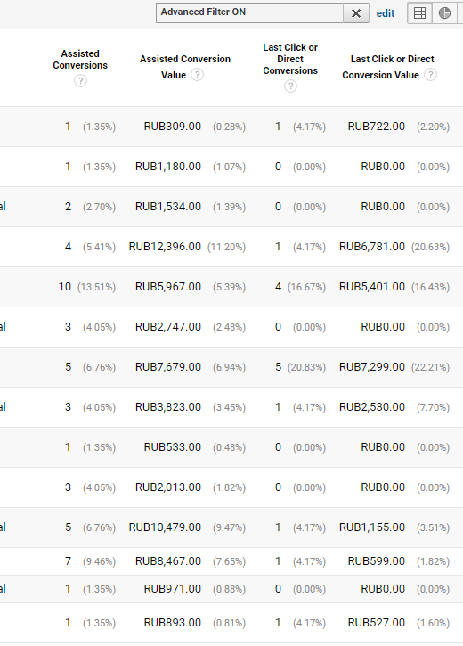 Коллеги, поделитесь своими мыслями. Есть ассоциативные конверсии (АК) по ключам. По ним доход даже больше, чем по прямым конверсиям (ПК). Разумно ассоциативный доход учитывать при выставлении цены за клик. Но по какой формуле? Можете ее здесь написать?