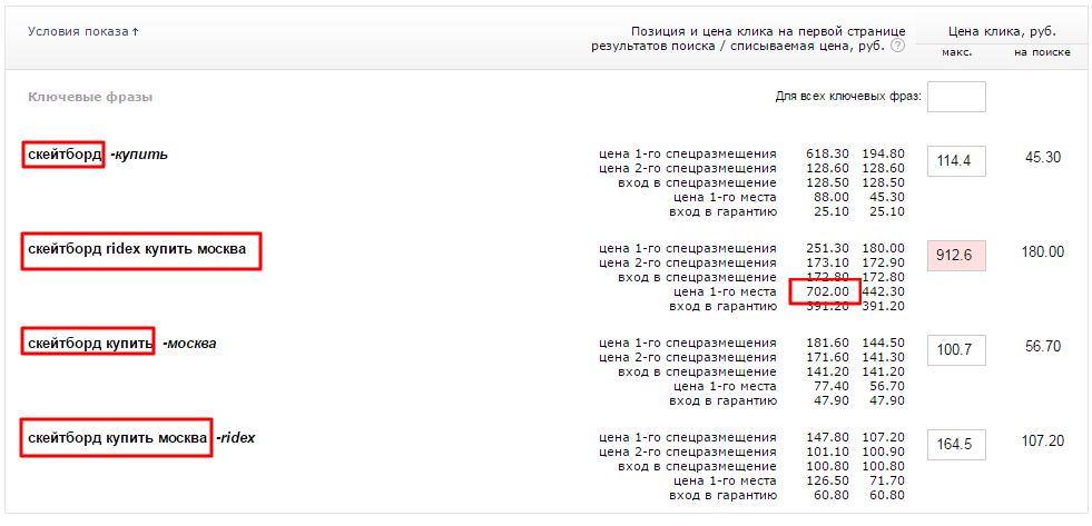 >при более высокой стоимости клика кстати На стоимость клика влияет только тип соответствия. Широкое или фразовое. Разбивка на города/пол/время дня не влияет на стоимость клика.