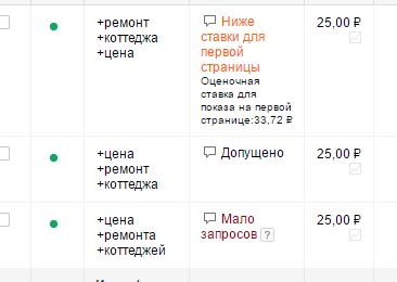 Гугл же умеет писать, что указанная стоимость клика недостаточна, но в данном случае этого не делает.