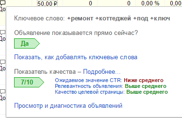 Вот ещё "По вашему ключевому слову сейчас не выполняется показ рекламы в Google из-за низкого рейтинга объявлений. На этот показатель влияет ваша ставка и показатель качества." Как его повысить, ставку пробовал больше делать, всё равно нет выводит.